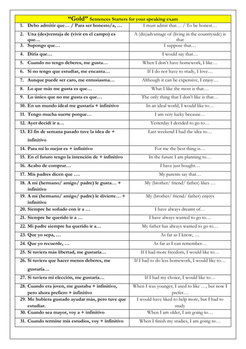 Spanish Gcse Grade 8 Sentence Starters For The Speaking Exam Teaching Resources